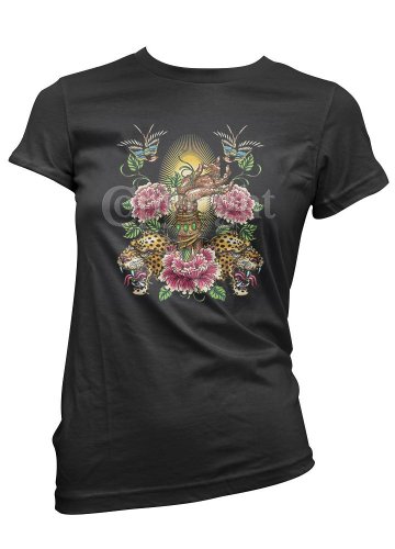 Leopard Hand Womens T-shirt, Womens Tattoo T-shirt, Large, Black